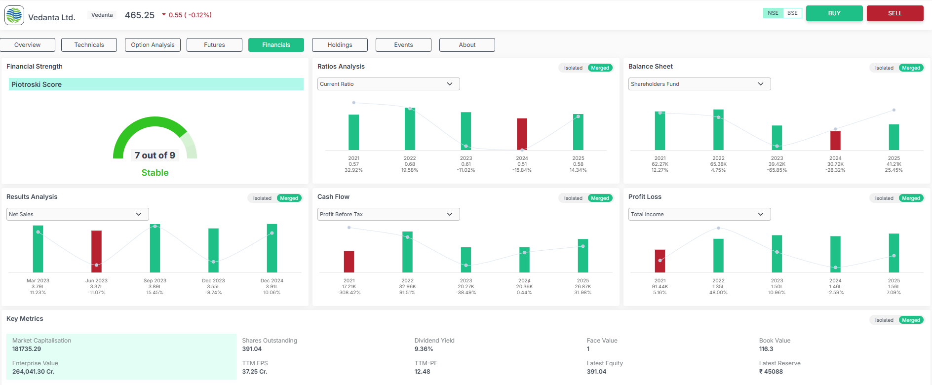 Financially, Vedanta has shown consistent but modest growth relative to the overall market. The firm has good profitability and operational discipline. Its price-to-book ratio is approximately 4.85, which is just higher than the industry median of 3.65, indicating a premium valuation of its assets. The TTM price-to-earnings ratio is close to 12.48, which is a bit higher than the sector median of 12.58, showing valuation close to industry standards. Vedanta stock cannot be categorized as overbought, hence good for moderate investment allocation based on its fundamental strengths and outlook.
