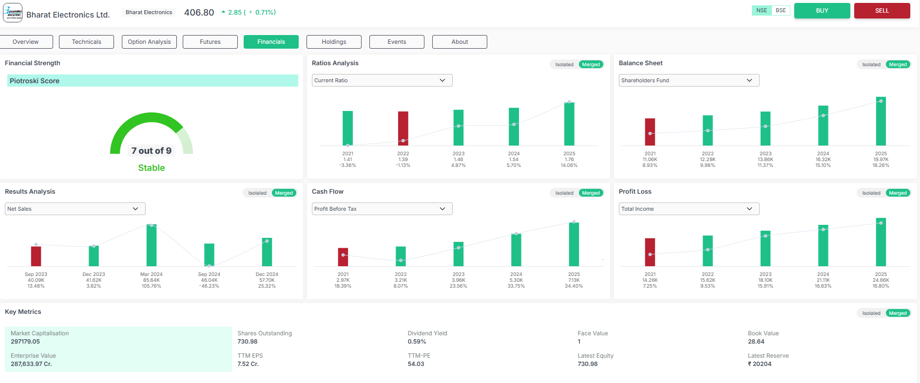 From a financial perspective, BEL has achieved consistent but modest growth compared with wider market trends. BEL continues to exhibit robust profitability and operational leverage. The price-to-book ratio is approximately 14.77, above the industry average of 9.33, indicating that the stock pays a premium on its book value. Equally, its twelve trailing months (TTM) price-to-earnings (PE) ratio stands at around 54.02, higher than the industry standard of 35.37, which indicates a valuation greater than that of the industry norm. Even with these higher valuation ratios, BEL is not overbought at the moment, and it is a good choice for average exposure to investment due to its fundamentals and prospects.