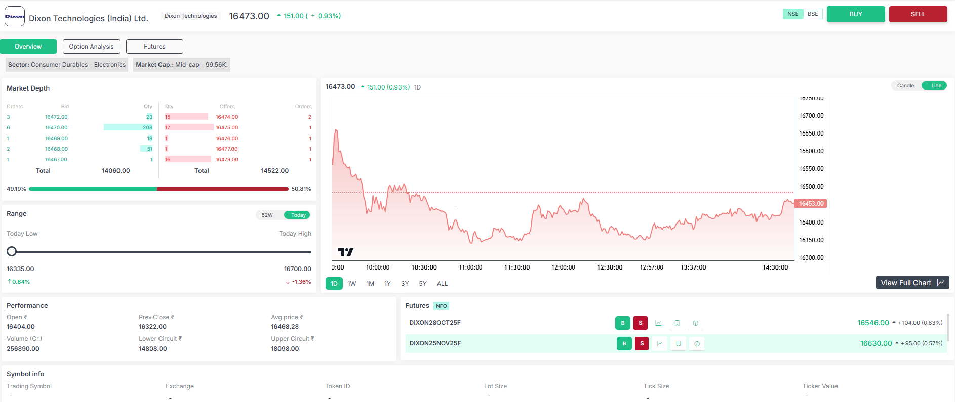 The share of Dixon Technologies (India) Limited has appreciated by approximately 1-year price appreciation of 15.9% through October 2025. Its stock is regarded to have higher risk, with its volatility being at around 3.14 times higher than the Nifty index, signifying it being more susceptible to price variations relative to the overall market. Its recent performance in the market is considered moderate with valuation indicators placing the stock on a premium compared to the average industry peers and the market.
