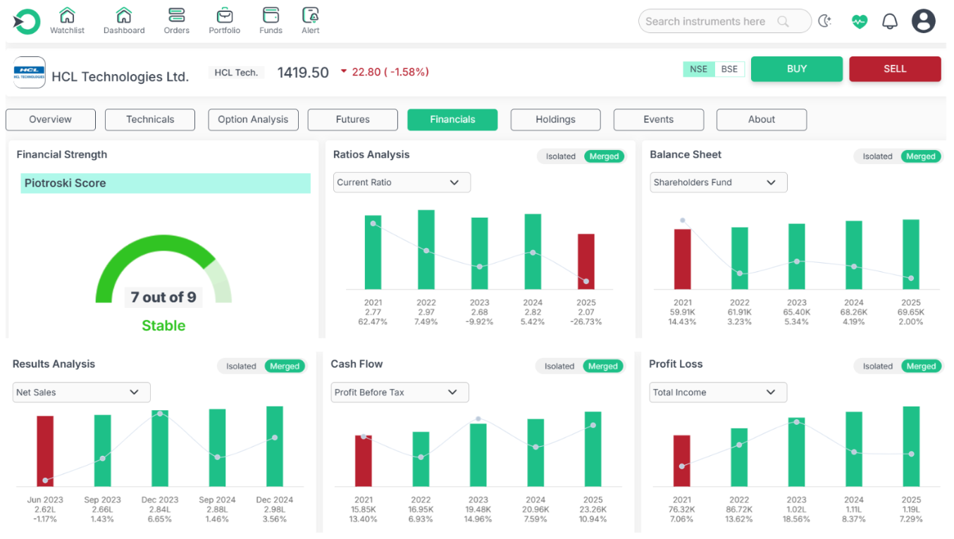 HCL Technologies Ltd. is virtually debt-free, ensuring financial stability and lower risk exposure. With a solid Return on Equity (ROE) of 30.09%, it has demonstrated its ability to generate consistent returns for shareholders. The company also boasts an impressive cash conversion ratio of 130.37, reflecting strong liquidity and efficiency in converting profits into cash. Additionally, its healthy operating margin of 34.67% underscores the company’s operational strength and effective cost management.